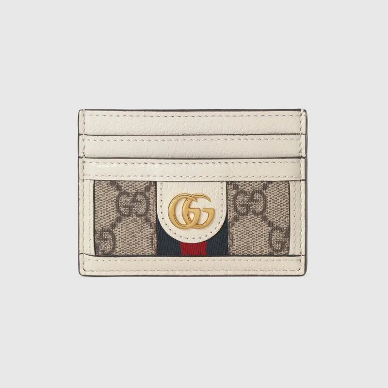オフィディアコレクションは、レトロにインスパイアされたディテールとクラシックなブランド要素を備えた、グッチの「アリア-ファッションアリア」コレクションで再解釈されています。 アイコニックなダブルGのディテールとストライプのウェブを組み合わせたこのカードホルダーは、クラシックなフィット感でグッチブランドのルーツに敬意を表しています。 ベージュとエボニーのGGSupremeキャンバスにホワイトレザーのトリムをあしらい、モダンなアピールを実現。