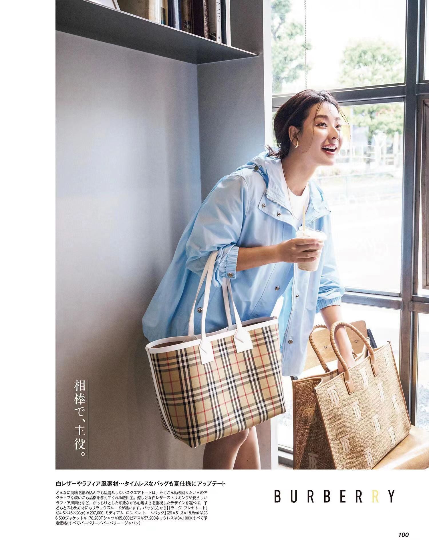 コットンキャンバスで製作した容量たっぷりなスタイル。バーバリーチェックをジャカード織でフィーチャーしました。