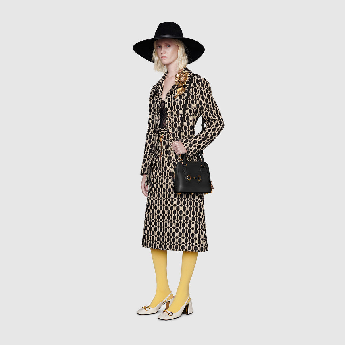 Epilogueコレクションに、ミニサイスの〔グッチ ホースビット 1955〕トップハンドルバッグが登場。ドーム型のフォルムをブラックのレザーで仕立て、トップハンドルと取り外し可能なレザーのショルダーストラップを配しました。ナチュラルカラーで仕立てたこのバッグには、取り外し可能なレザーのショルダーストラップが付いています。〔グッチ ホースビット 1955〕は、60年以上前に誕生したオリジナルのバッグを彩っていたディテールに現代的なスピリットを加え、ホースビットを際立たせたライン。ダブルリングとバーから成るこのモチーフはブランドのルーツを物語るもので、乗馬の世界から取り入れたグッチのシンボルの中でも最も代表的なエレメントのひとつとなっています。
